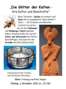 Die Vortragsreihe von Peter Nispel findet jetzt regelmäßig am letzten Montag im Monat um 14:00 Uhr in der Weidenhof-Residenz in Zusammenarbeit mit dem SeniorenNetzwerk Weiden im Vortragsraum statt.